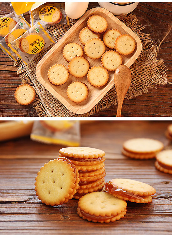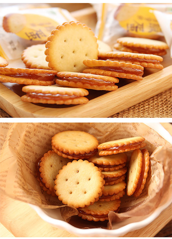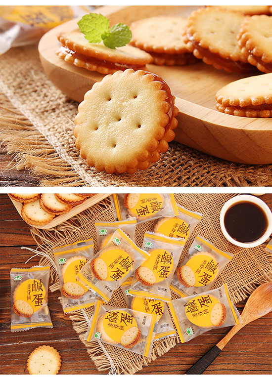 Bánh Quy Trứng Muối Đài Loan 500g khác các loại bánh quy khác là bánh được đóng túi từng cái, từng gói khác nhau, ăn cái nào bóc cái đó. Chính giữa hai lớp bánh là mạch nha không quá ngọt tạo độ dẻo để kẹp lớp trứng muối tán nhuyễn vào trong.