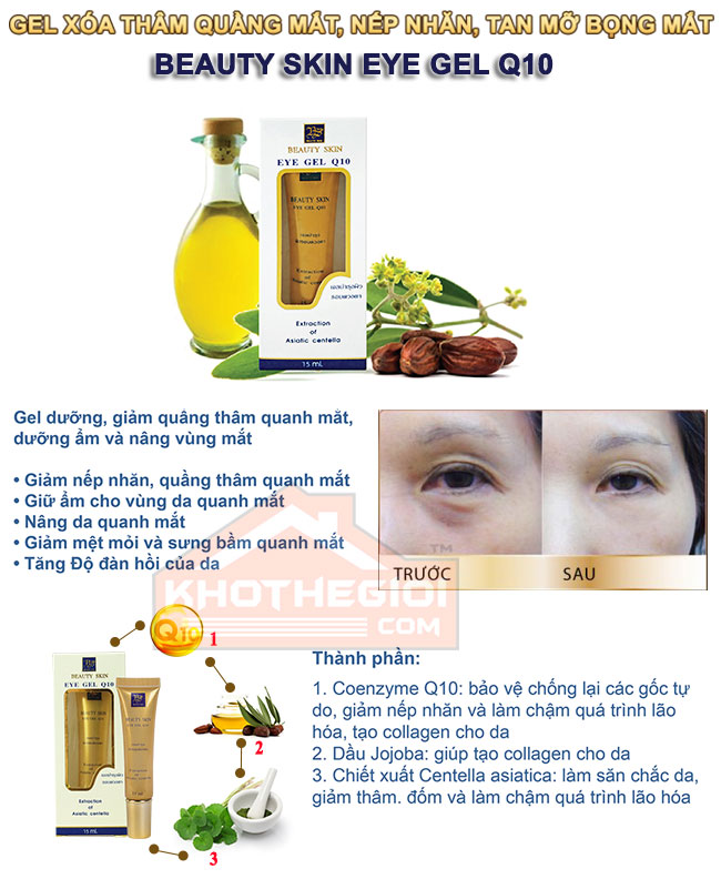 Beauty Skin Eye Gel Q10 - Phương pháp trị thâm bọng mắt hiệu quả
