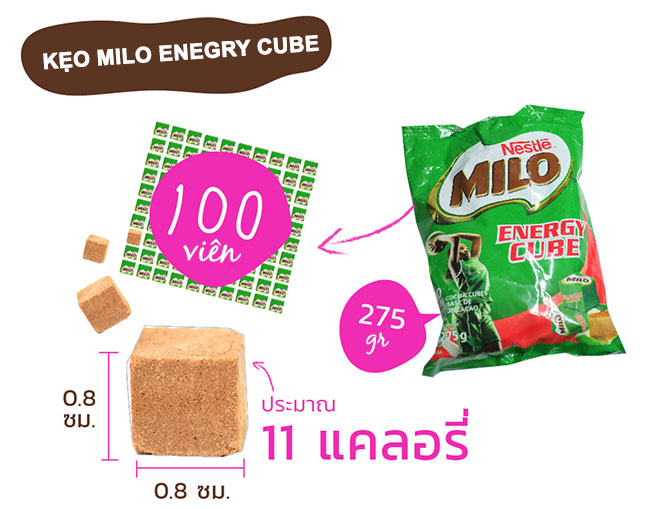*** Kẹo Milo Energy Cube với thành phần chính là bột Milo, có hương vị béo thơm, ngọt nhẹ, hình viên xinh xắn, viên kẹo cực độc lạ này đã nhanh chóng “đốn tim” vô số tín đồ ăn vặt ở Việt Nam.