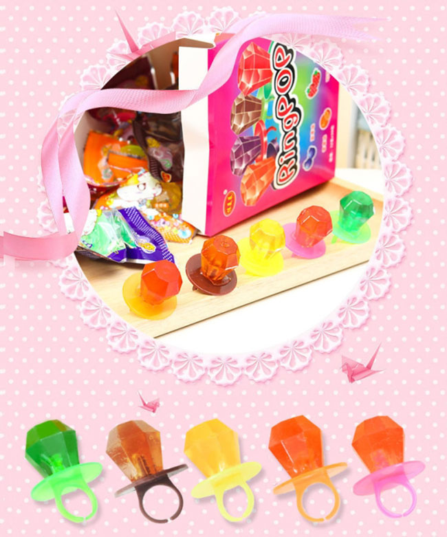 Kẹo nhẫn Ring Pop được sản xuất trên dây chuyền đảm bảo an toàn vệ sinh thực phẩm của Thái Lan. Kẹo hình kim cương hàng nội địa Thái - gắn liền với tuổi thơ của trẻ nhỏ. Các bé vừa đeo nhẫn vừa mút kẹo, đây đảm bảo sẽ là món quà tuyệt vời cho các bé.